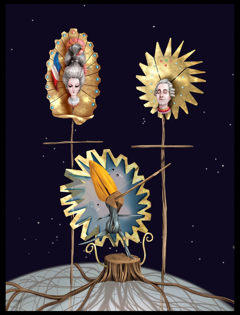 This is why the painting starts with a Full Moon on a tree full of eggs not yet hatched and develops with Marie Antoinette and Louis XVI beheaded.