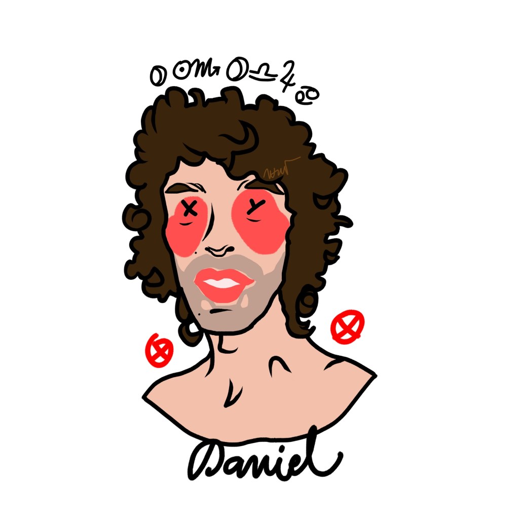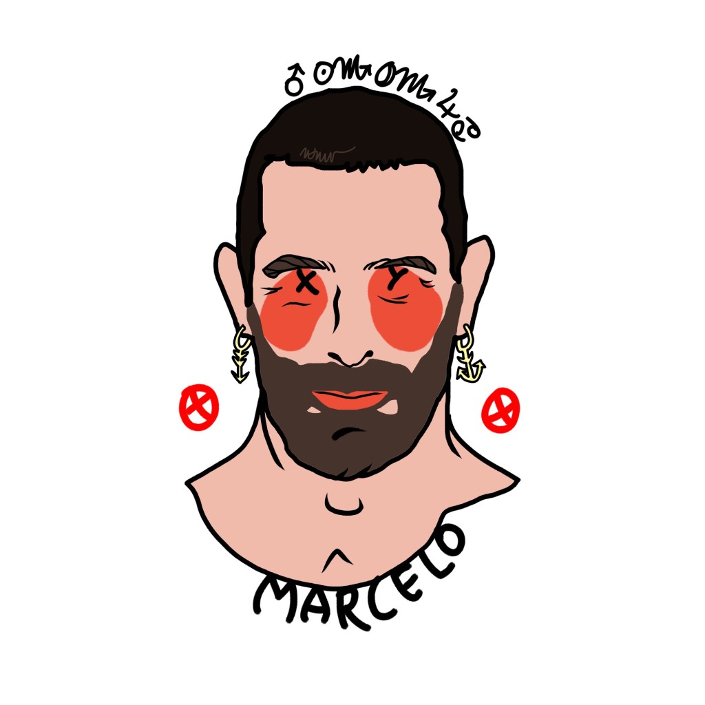 This applied to friends, historical figures like the De’ Medici, and classical references. Stylised red nipples appeared at the edges — graphic signs and sexual allusions.