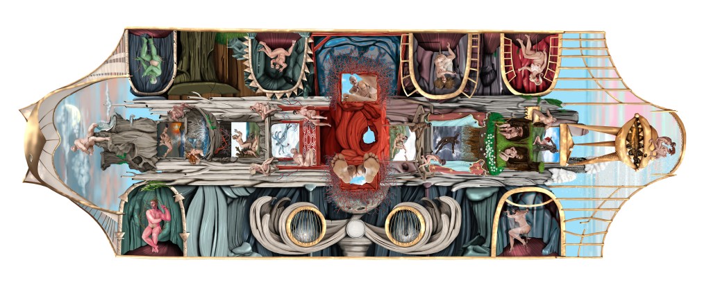 The final chapter, SZ Cosmogony, is a more intimate, immersive experience, structured like a book or the Garden of Earthly Delights by Bosch.