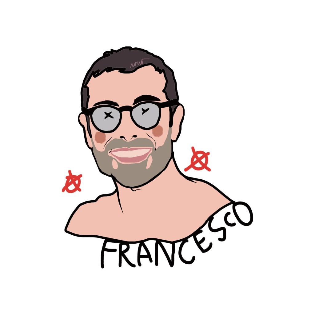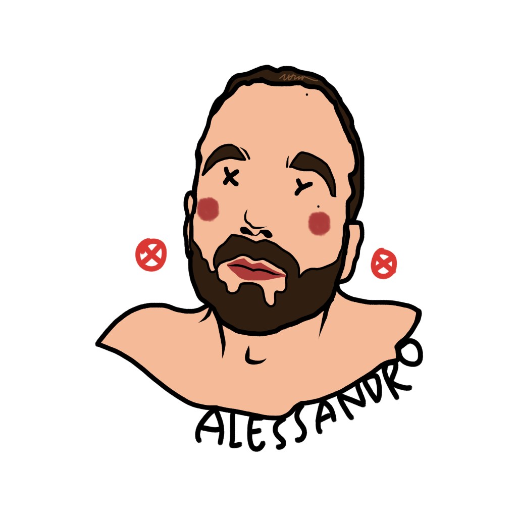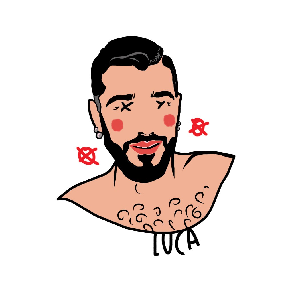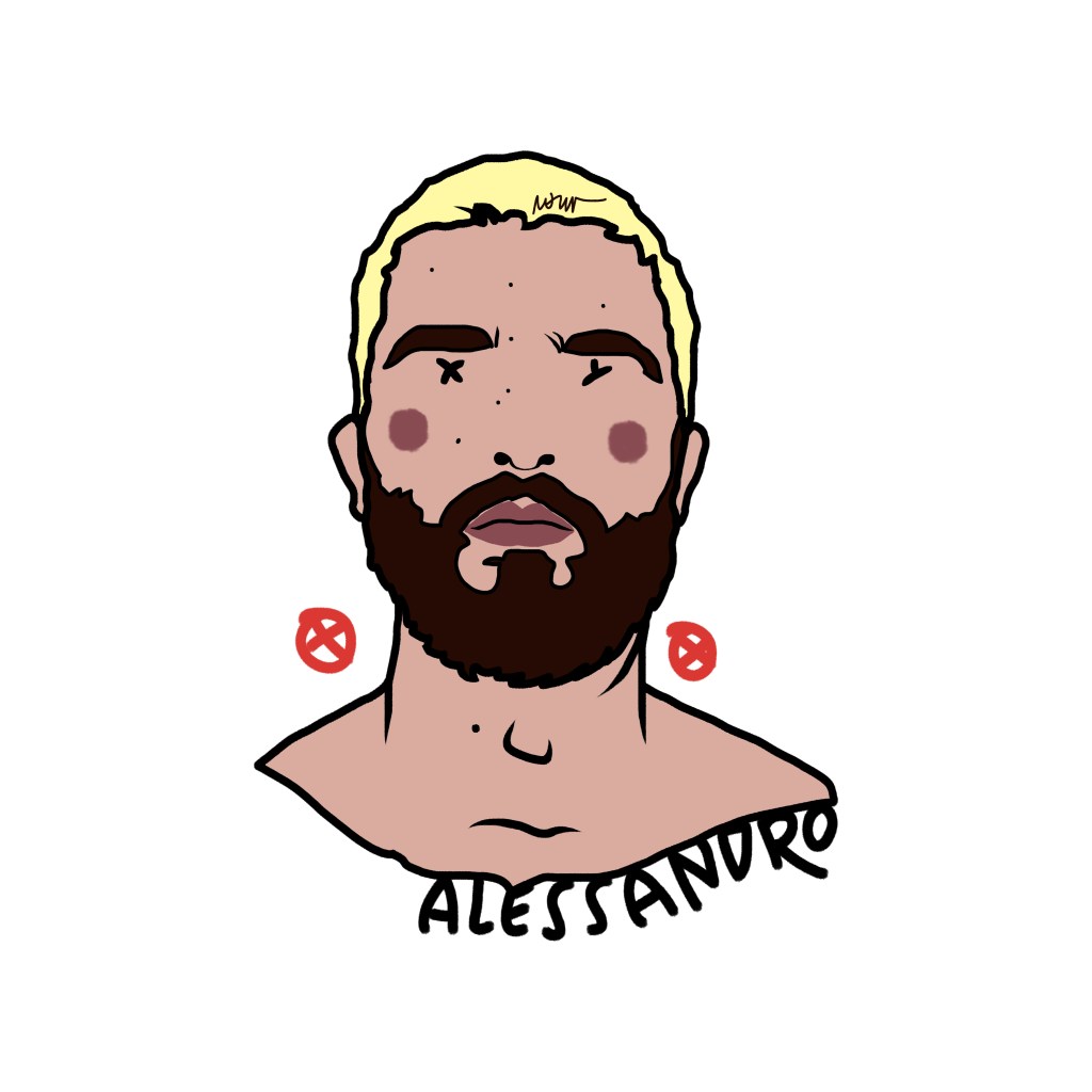 Among these marks, one element is crucial: the name beneath the portrait, the only trace of identity that survives, a cultural imprint that defines us even when the face disappears. Sex chromosomes replace the eyes—XX for female subjects, XY for male—while two stylized red nipples at the sides of the face—circles with a dot (XX) or a cross (XY)—evoke identity, exposure, desire, and vulnerability.