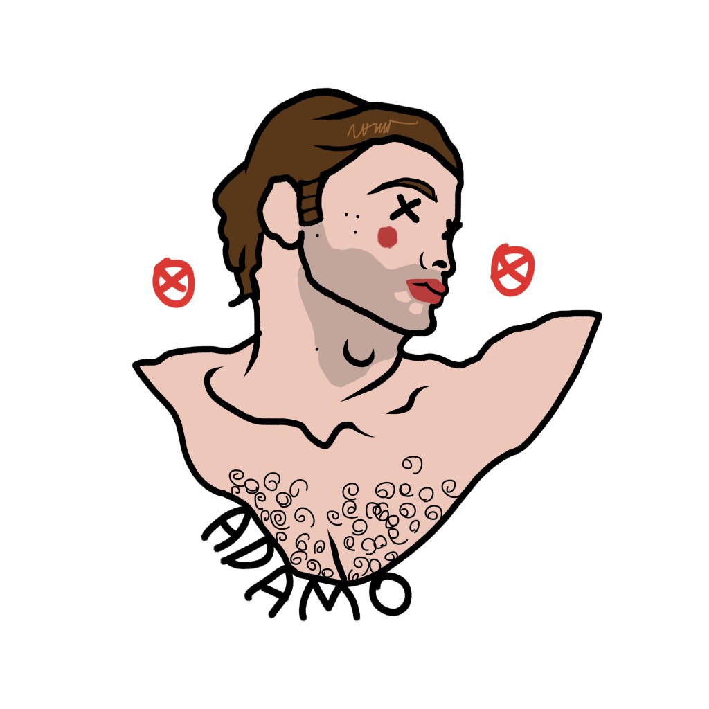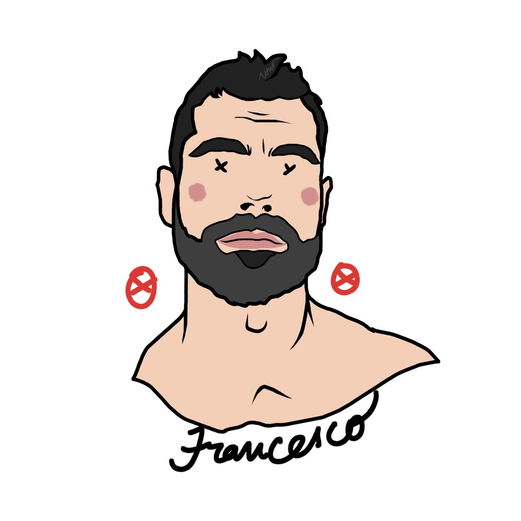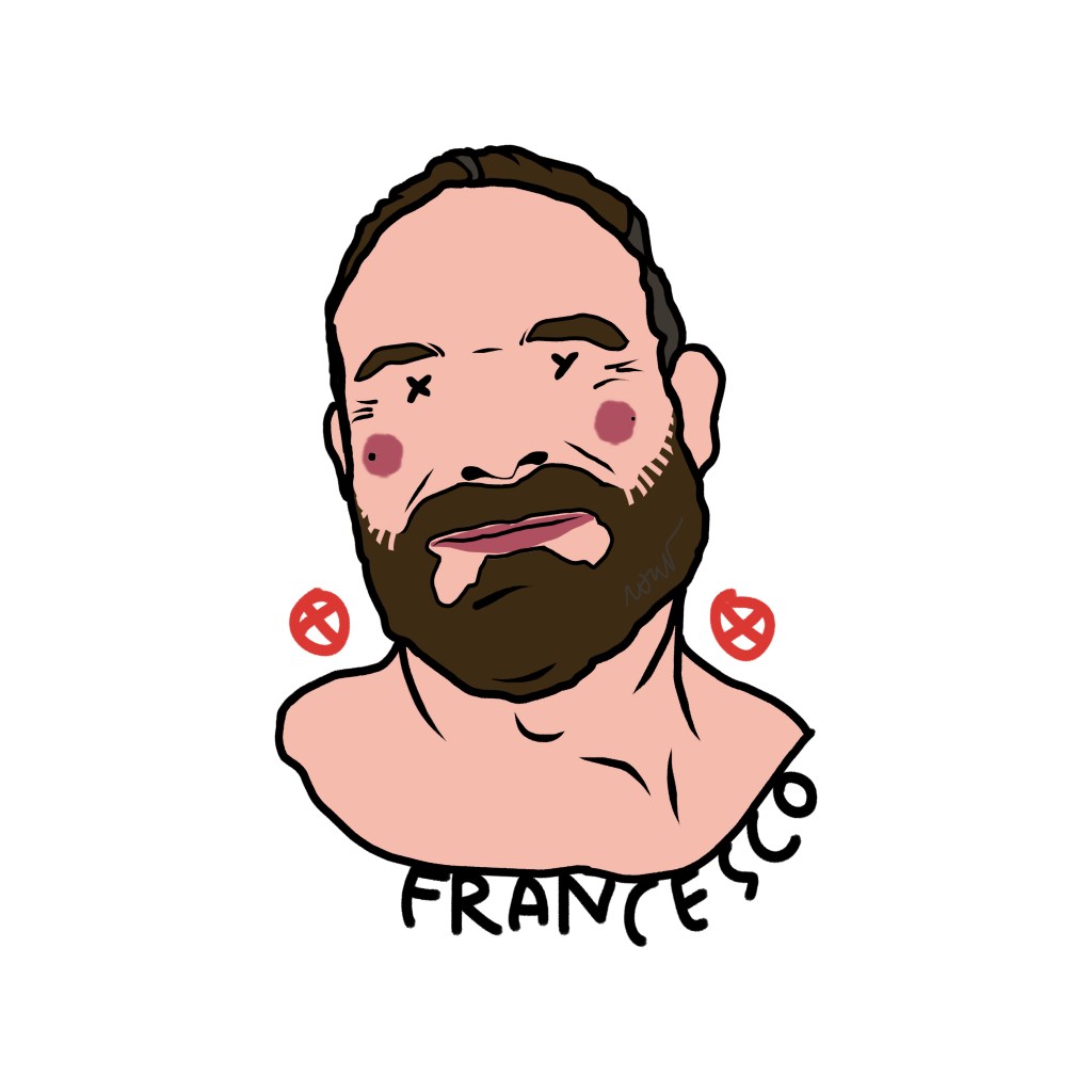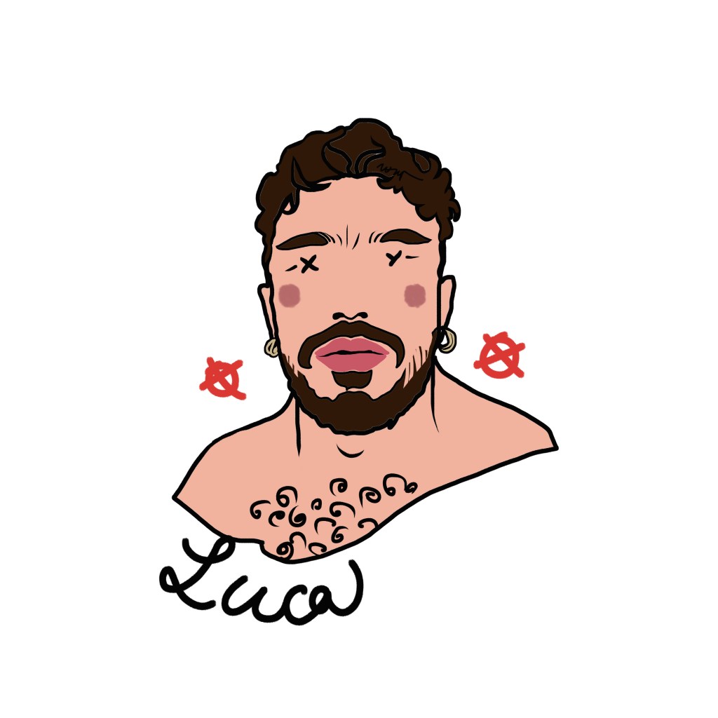 Among these marks, one element is crucial: the name beneath the portrait, the only trace of identity that survives, a cultural imprint that defines us even when the face disappears. Sex chromosomes replace the eyes—XX for female subjects, XY for male—while two stylized red nipples at the sides of the face—circles with a dot (XX) or a cross (XY)—evoke identity, exposure, desire, and vulnerability.
